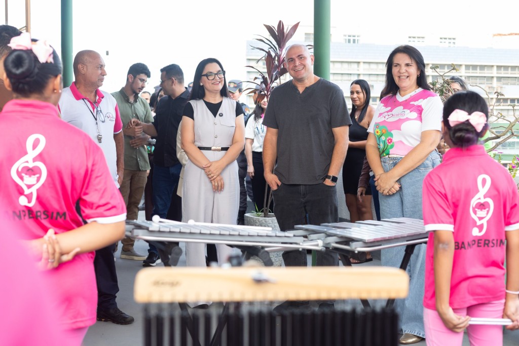 Contemplando uma bela vista da capital mato-grossense, mais de 30 meninas que compõem a Banda de Percussão do Programa Siminina foram recebidas pelo prefeito de