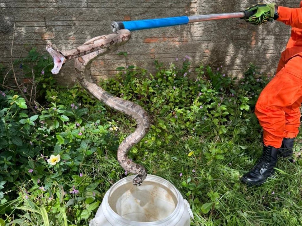 O Corpo de Bombeiros Militar de Mato Grosso (CBMMT) resgatou na manhã de domingo (25.1) uma cobra jiboia que estava no lote de uma residência