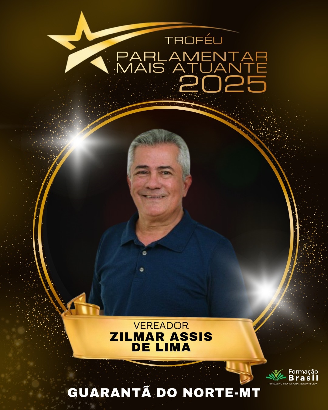 O vereador Zilmar Assis de Lima foi reconhecido como Parlamentar Mais Atuante 2025, em premiação concedida pela Formação Brasil, instituição de formação profissional com reconhecimento