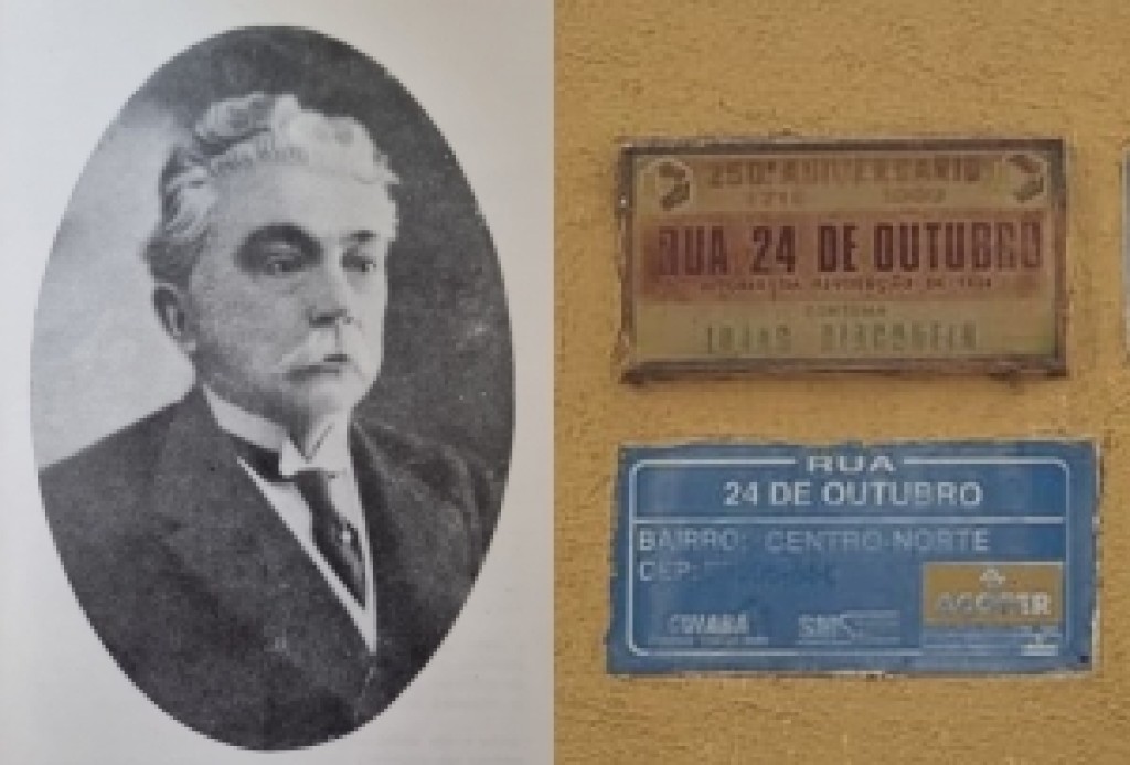 A rua 24 de outubro possuipouco mais de mil metros de extensão econecta o centro da cidade de Cuiabá, a partir da rua Comandante Costa, à praça 8 de Abril.O historiador Rubens de Mendonça apresenta na obra Ruas de Cuiabá (1969) umahistória peculiar sobre essa via, que conheceremos neste artigo. De acordo com Mendonça, o nome da ruaé uma referência ao movimento revolucionário ocorrido no Brasil em 1930. O dia 24 de outubro de 1930 é considerado a data chave para os revolucionários de então, pois foi quando eles depuseram o Presidente da República Washington Luís, e impediram a posse do governador paulistaJúlio Prestes, vencedor nas eleições presidenciais daquele ano. Os revolucionários criaram uma junta governativa e dias depois transferiramo poder para o gaúcho Getúlio Vargas, derrotado nas eleições. Essa revolução significou a degradação dos comandos políticos regionais, do período da República Velha (1889-1930), também conhecida comoa República dos Coronéis e do Café com Leite. O historiador Boris Fausto afirma que esse movimento deu início ao domínio de um grupo político mais jovem, mais afeitoà industrialização, às pontuais reformas sociais e trabalhistas, mas caracterizadamente articuladora de um poder estatal mais centralizador com o propósito de combater as oligarquias regionais.