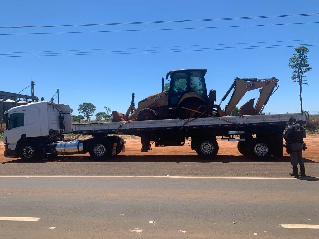 De acordo com o boletim de ocorrência, os policiais militares de Mato Grosso, receberam informações das equipes de inteligência, de que o condutor de um caminhão Scania estaria transportando uma retroescavadeira, com registro de roubo, no último dia 9, na cidade de Orlândia, no Estado de São Paulo, e que passaria por uma região de divisa com o Estado de Goiás.