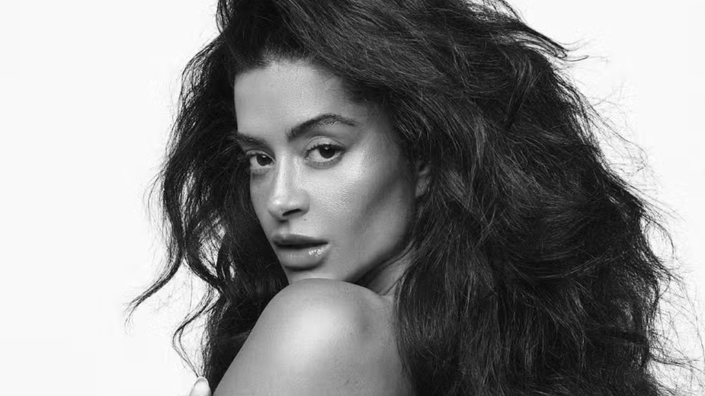 Nas imagens em preto e branco, ela aparece de topless e também com um look fitness, exibindo tatuagens e posando com cabelos volumosos.