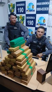 COM A APROXIMAÇÃO DA VIATURA, OS SUSPEITOS EMPREEENDERAM FUGA E CONFORME A PM, ARREMESSARAM PARA FORA DO CARRO UM TABLETE DE SUBSTANCIA ANALOGA A MACONHA.