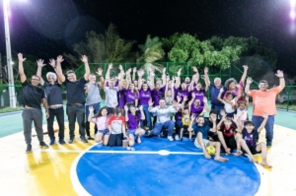 Ela também agradeceu o apoio de todos os envolvidos na revitalização da quadra, destacando o trabalho conjunto que tornou a entrega possível.