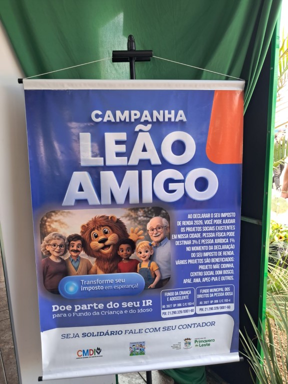 A Secretaria Municipal de Assistência Social, também está presente no estande institucional montado no Parque de Exposições durante a Farm Show 2026. E entre as ações desenvolvidas ao longo da feira está a divulgação da campanha Leão Amigo, uma iniciativa que busca conscientizar a população sobre a possibilidade de destinar parte do Imposto de Renda para projetos sociais do município.