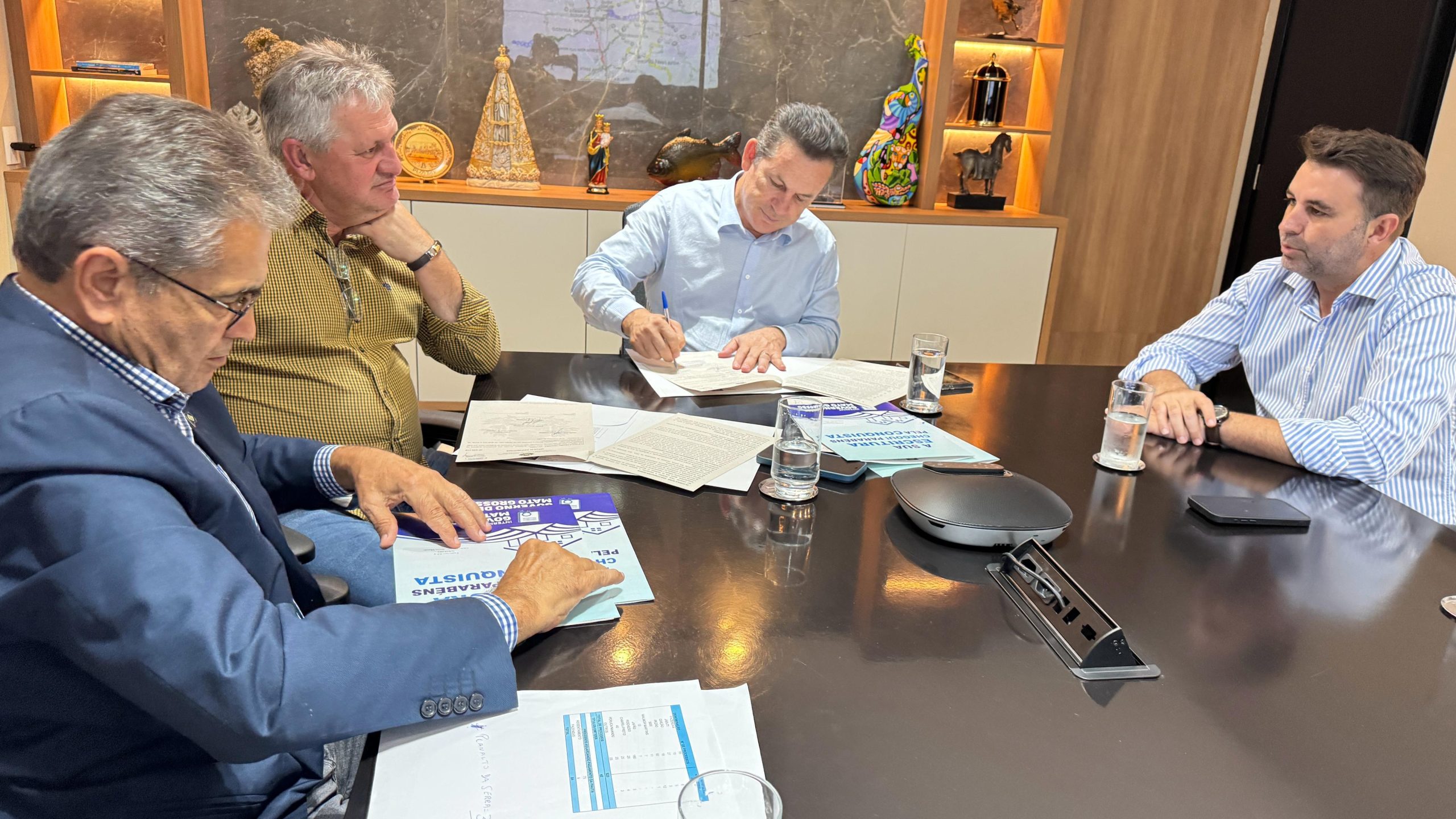 A reunião que aconteceu no último dia 25 de novembro, em Cuiabá, entre o governador Mauro Mendes (UB), o deputado estadual Dilmar Dal Bosco (UB), Chefe da Casa Civil, Fabio Garcia (UB), o presidente do Intermat, Serafim Danilo, Associação Apromundo e lideranças da Gleba Divisa, em Novo Mundo (760 km da capital), marcou um capítulo importante na história da regularização fundiária do norte de Mato Grosso. No encontro, foram assinados e entregues, de forma simbólica, os primeiros títulos definitivos de áreas de expansão da gleba, um gesto que confirma, na prática, que o estado começou a tirar da gaveta processos que se arrastam há muitos anos.