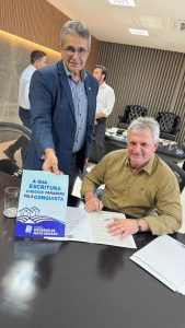 Após anos de cobrança e articulação, governo de Mato Grosso, Dilmar Dal Bosco, Apromundo e Intermat entregam primeiros títulos e destravam regularização de mais de 500 propriedades rurais.