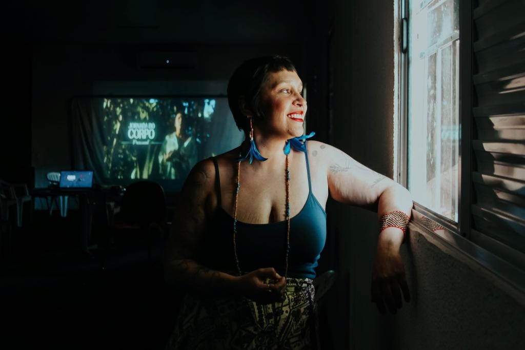 A exposição coletiva “A Jornada do Corpo” está sendo exibida por meio de QR Codes em adesivos e placas em braile fixados em postes e centros culturais de Cuiabá, Chapada dos Guimarães e Várzea Grande. O trabalho divulga imagens, criações literárias e histórias de vida de 20 mulheres com corpos dissidentes, como trans, travesti, negra, gorda e parda, que são realizadoras de arte e cultura.