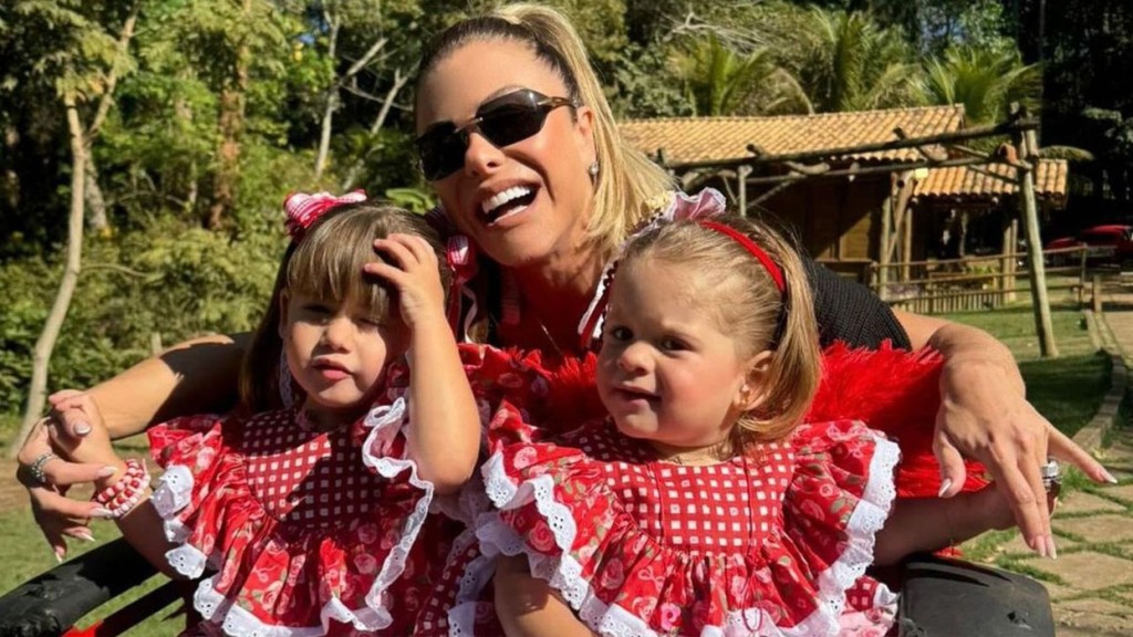 Maria Alice, de 4 anos, e Maria Flor, de 3, filhas de Virginia Fonseca e Zé Felipe, passaram a quinta-feira (4), se divertindo com a avó paterna, Poliana Rocha. As meninas chamaram atenção ao aparecerem com o uniforme do Real Madrid, time de Vini Jr., atual namorado de Virginia. Poliana contou que o caçula, José Leonardo, 1, também estava no passeio, mas dormiu quase todo o tempo.