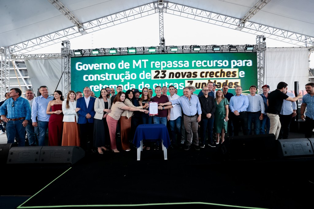 Durante a solenidade, o governador Mauro Mendes formalizou o repasse de R$ 80,9 milhões para a construção de 23 novas creches e retomada de obras de 7 unidades. O recurso é oriundo do Fundo Estadual de Apoio à Melhoria das Condições de Oferta da Educação Infantil e do Ensino Fundamental no Estado de Mato Grosso.