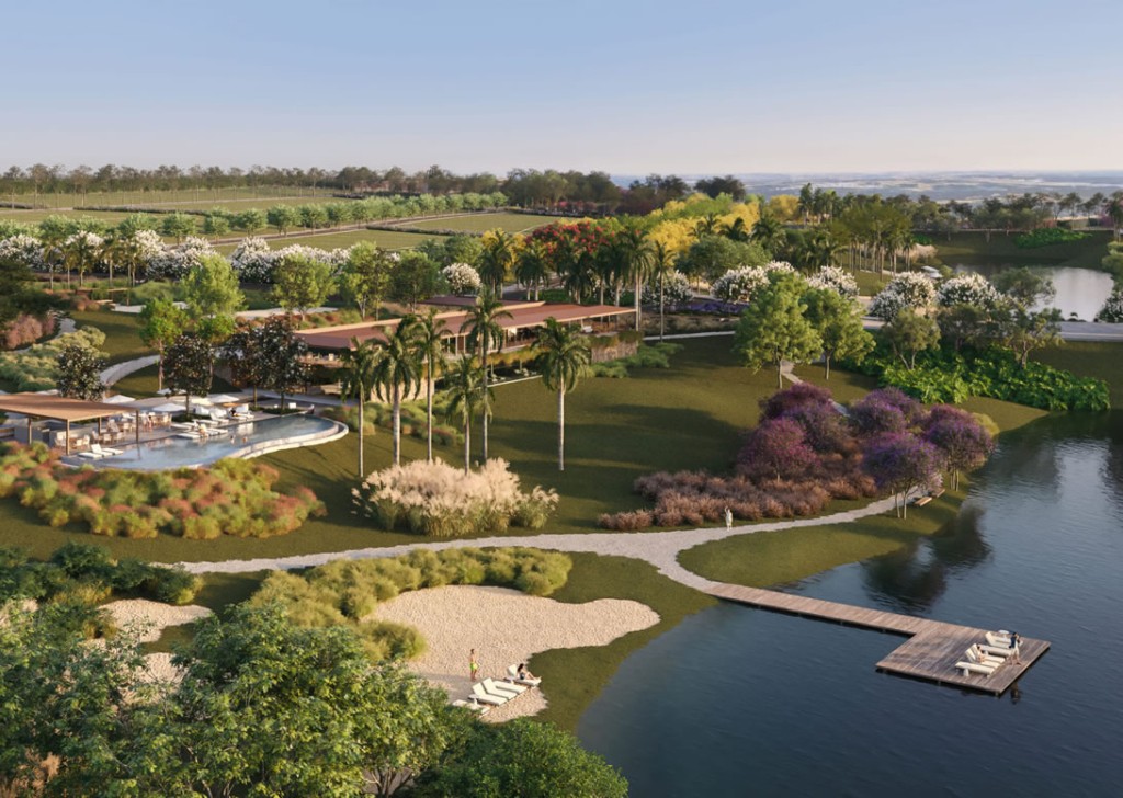 Com aproximadamente 450 mil m² de área total e 188 mil m² de áreas verdes e uso comum, o empreendimento privilegia o bem-estar e a fluidez entre espaços, conectando áreas de lazer, convivência e quatro lagos que somam 39 mil m² de lâmina d’água.