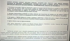 Conforme apuração de nossa reportagem junto aos autos do processo, os recorrentes buscavam a reforma de um acórdão que, ao anular uma sentença anterior, determinava o retorno dos autos à origem para a devida instrução processual. A decisão da corte, no entanto, foi enfática: a natureza da deliberação anterior é interlocutória, ou seja, não encerra o mérito da demanda, limitando-se a reorganizar o trâmite processual. Desta forma, a Desembargadora Presidente do TRE-MT Serly Marcondes Alves, em sua manifestação, consignou: “Assim, nega-se seguimento ao recurso especial eleitoral interposto por Levi Ribeiro e Tarcísio Garbin”.