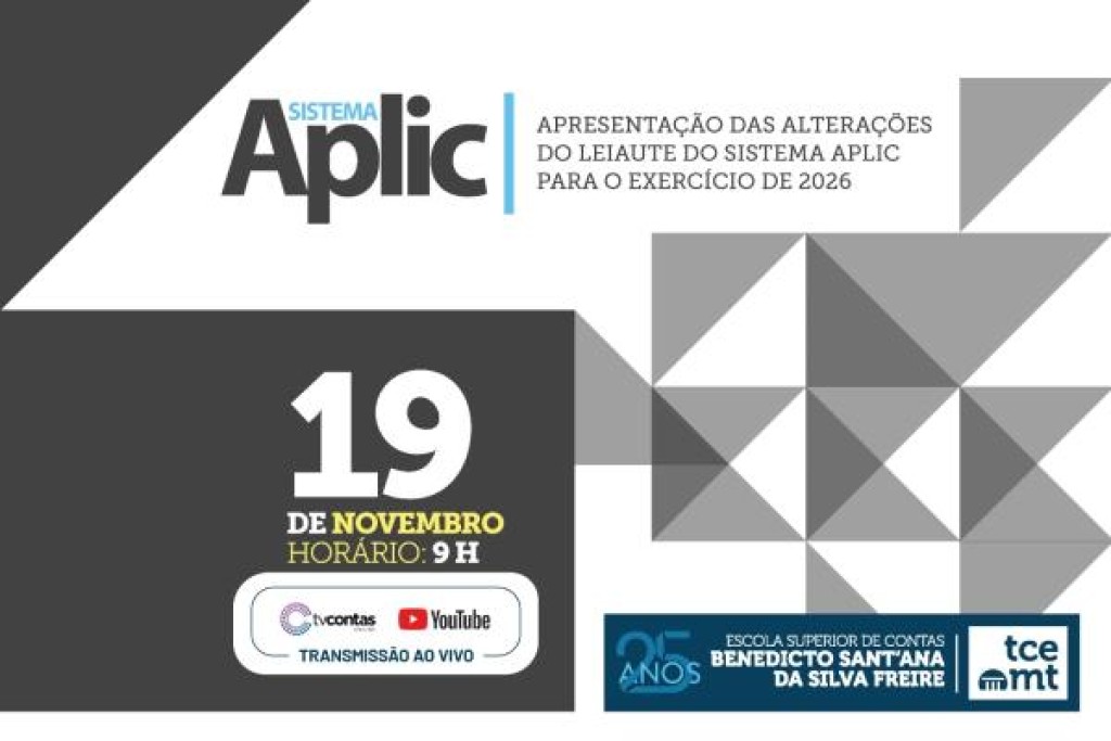 O Tribunal de Contas de Mato Grosso (TCE-MT) apresenta, a partir das 9h desta quarta-feira (19), o novo leiaute do Sistema Aplic (Auditoria Pública Informatizada de Contas) para o exercício de 2026. A capacitação online será transmitida ao vivo pelo Canal do TCE-MT no YouTube e pela TV Contas (canal 30.2)