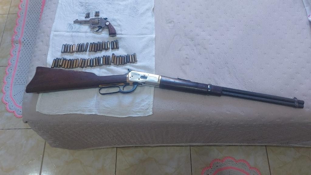 Durante o cumprimento das ordens judiciais em novo São Joaquim, com o apoio do Núcleo da Polícia Militar local, em uma das residências alvo da operação, foram apreendidos um revólver calibre .38 com 52 munições intactas e uma carabina calibre .22 com 6 munições intactas.