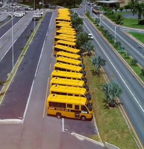 Durante o evento, foram entregues 300 ônibus escolares às prefeituras de diversas regiões do Estado. Com essa nova etapa, Mato Grosso alcança a marca de 1.305 veículos disponibilizados para reforçar o transporte escolar.